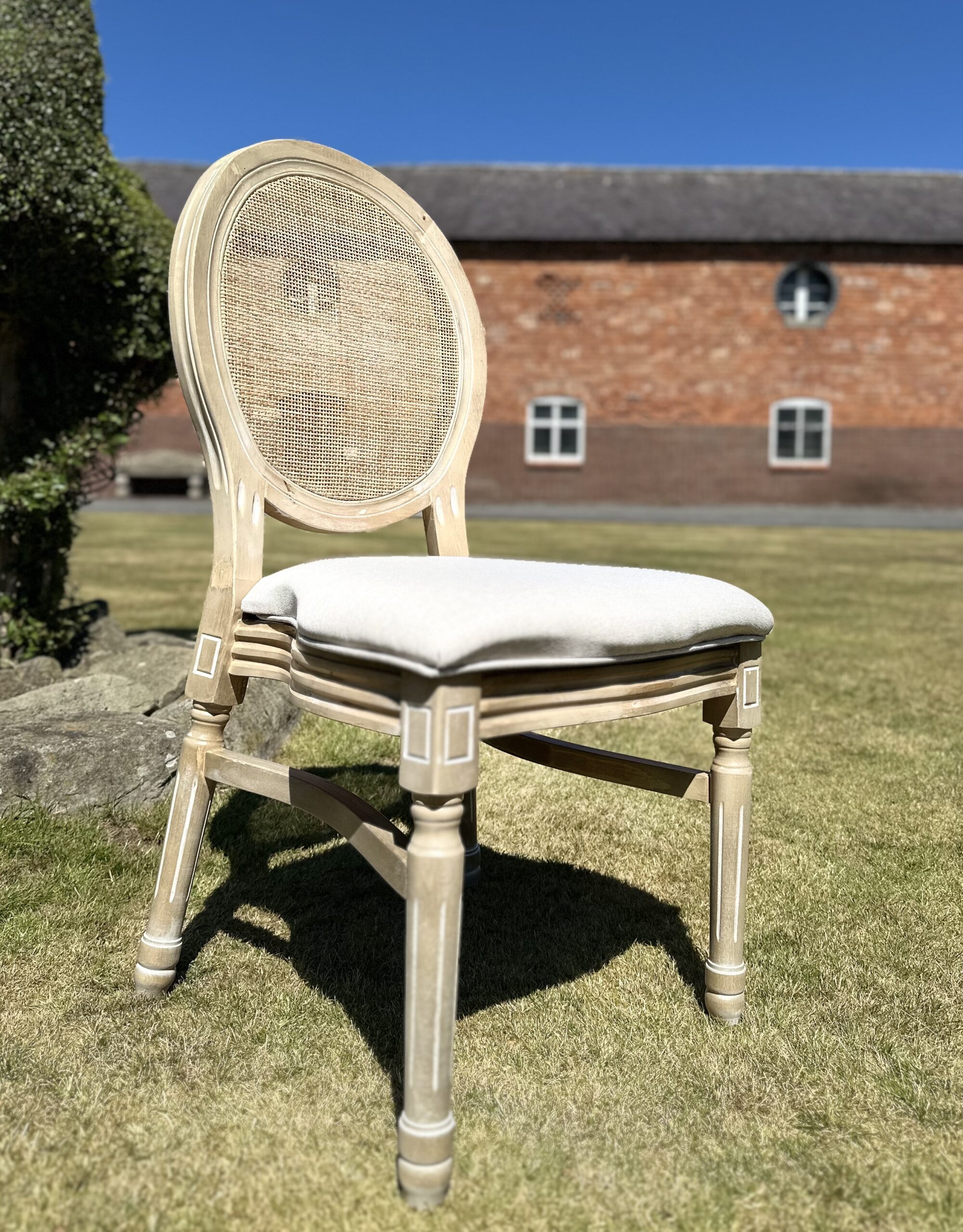 Our beautiful Limed Louis chairs will offer a stylish but rustic look for a special occasion. Their light natural wooden finish is enhanced with a subtle light wood wash for added texture and character.